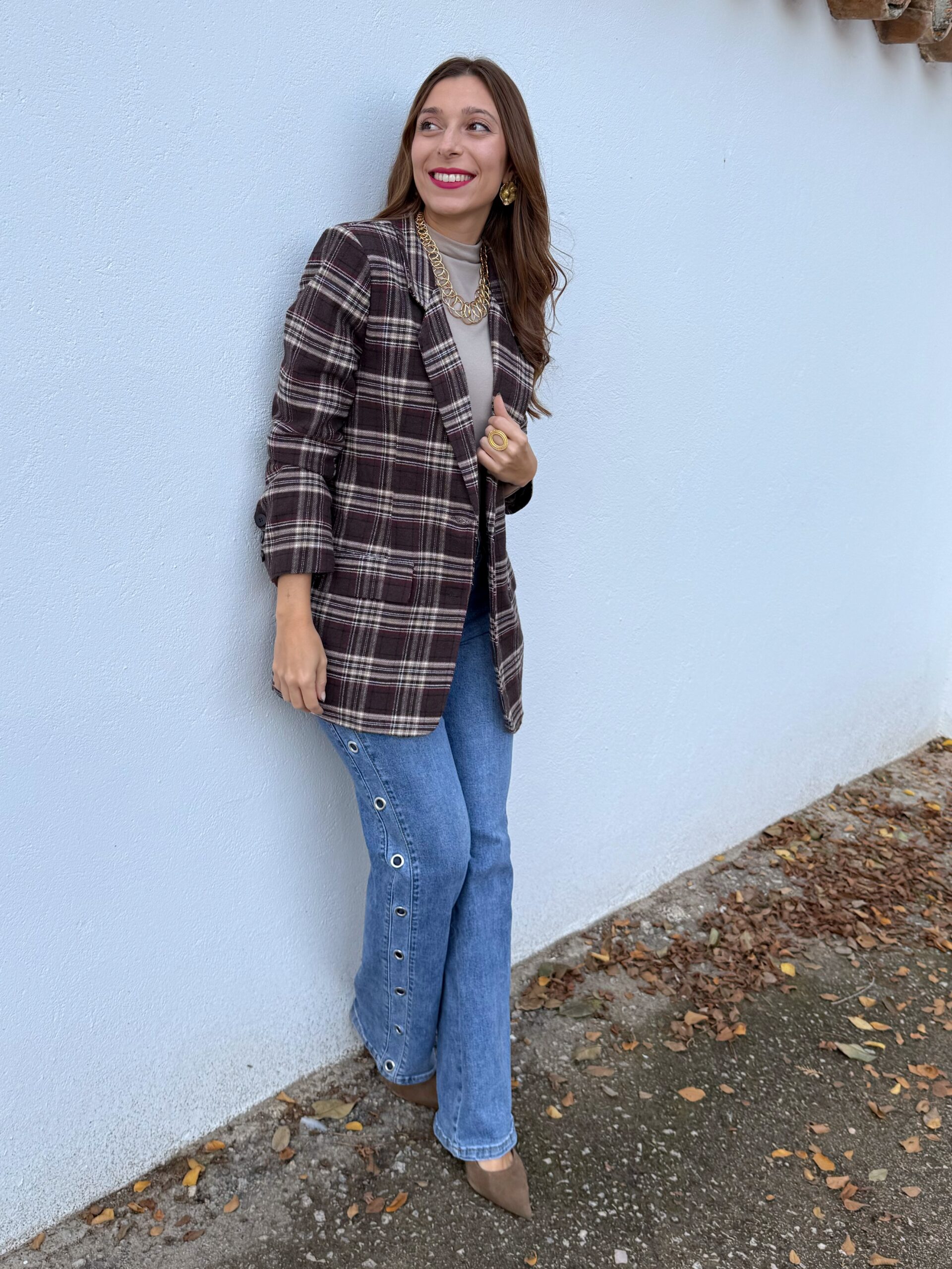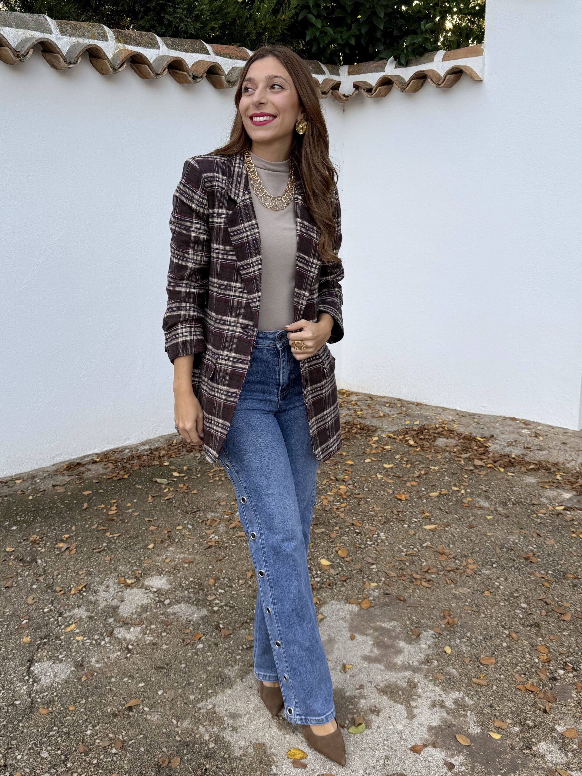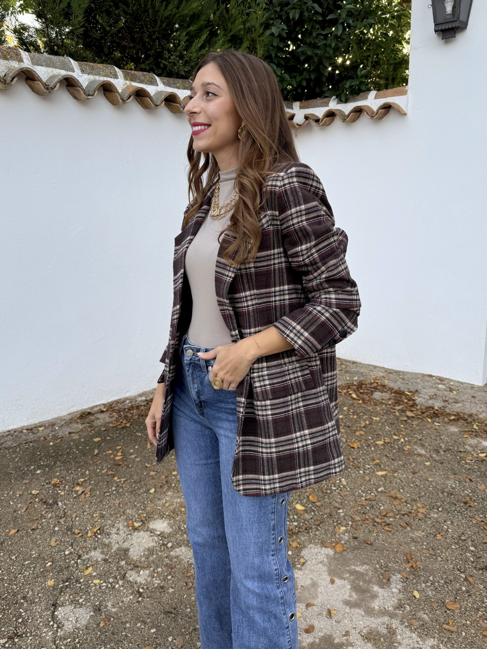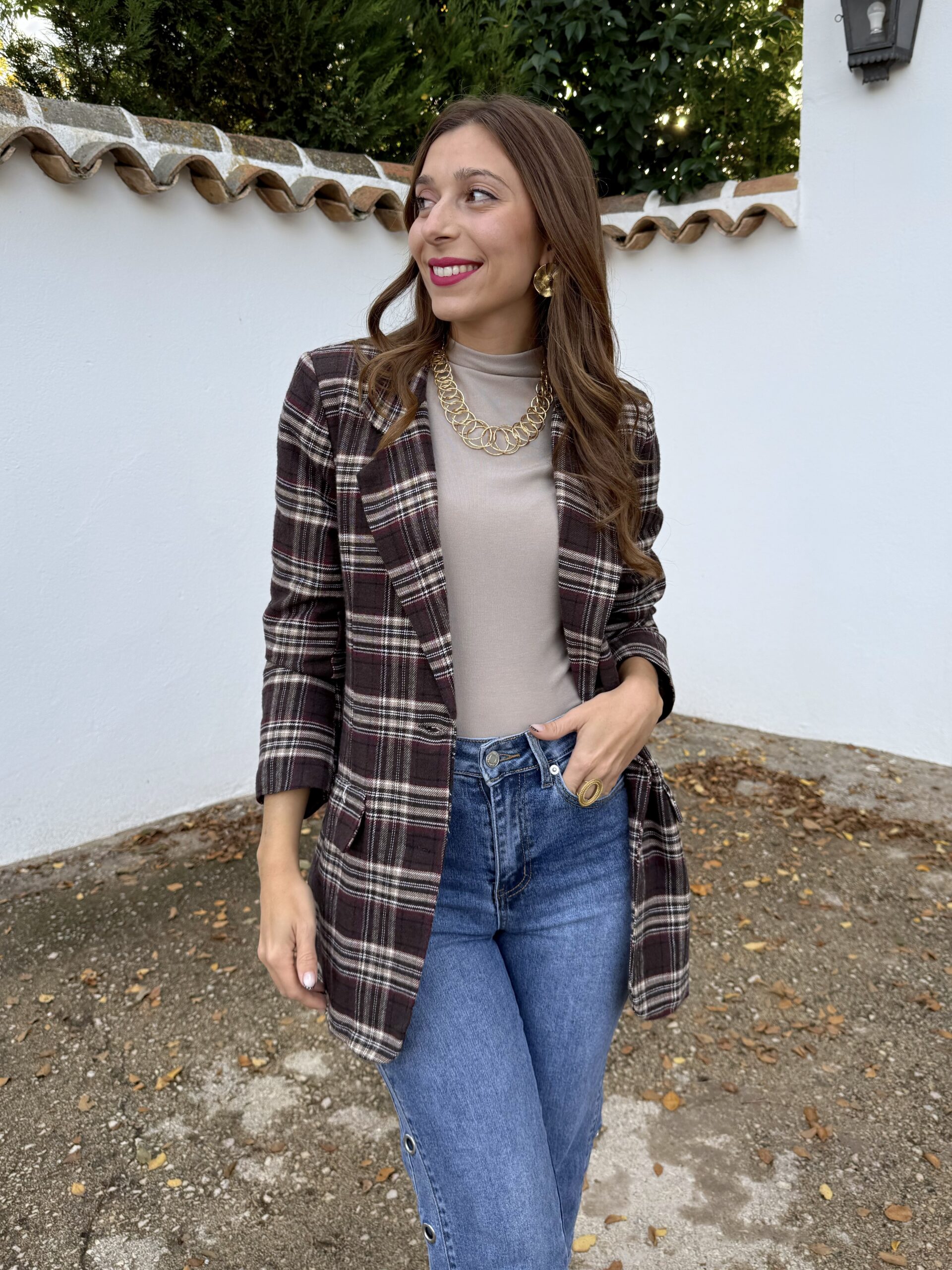 La Americana Romeo es esa prenda que transforma cualquier look sin esfuerzo. Su corte fluido, su caída perfecta y su aire sofisticado la convierten en el must-have de la temporada. Diseñada para mujeres con actitud y estilo, esta chaqueta se adapta a tu silueta y realza tu figura con un toque moderno y sutilmente atrevido.