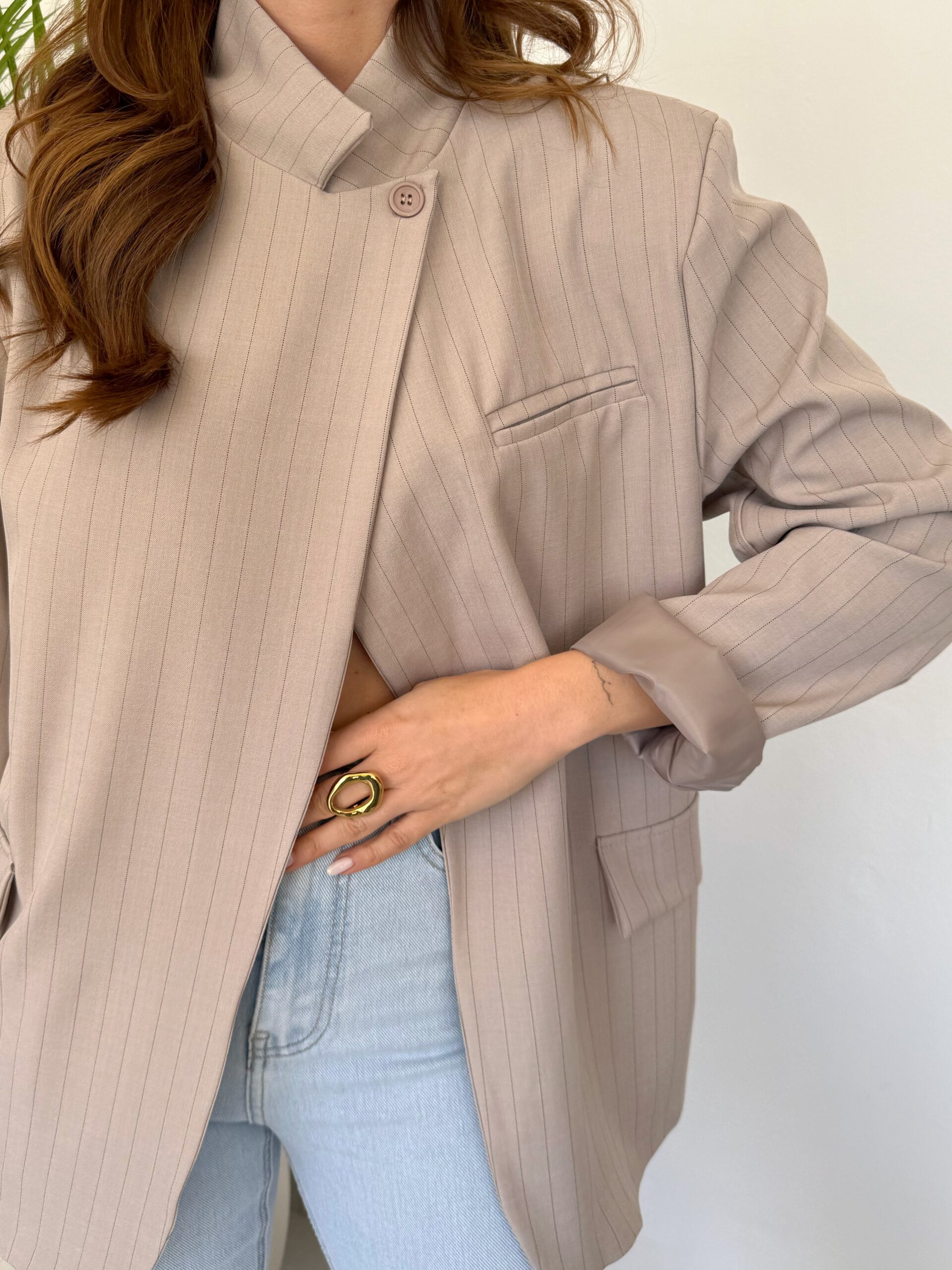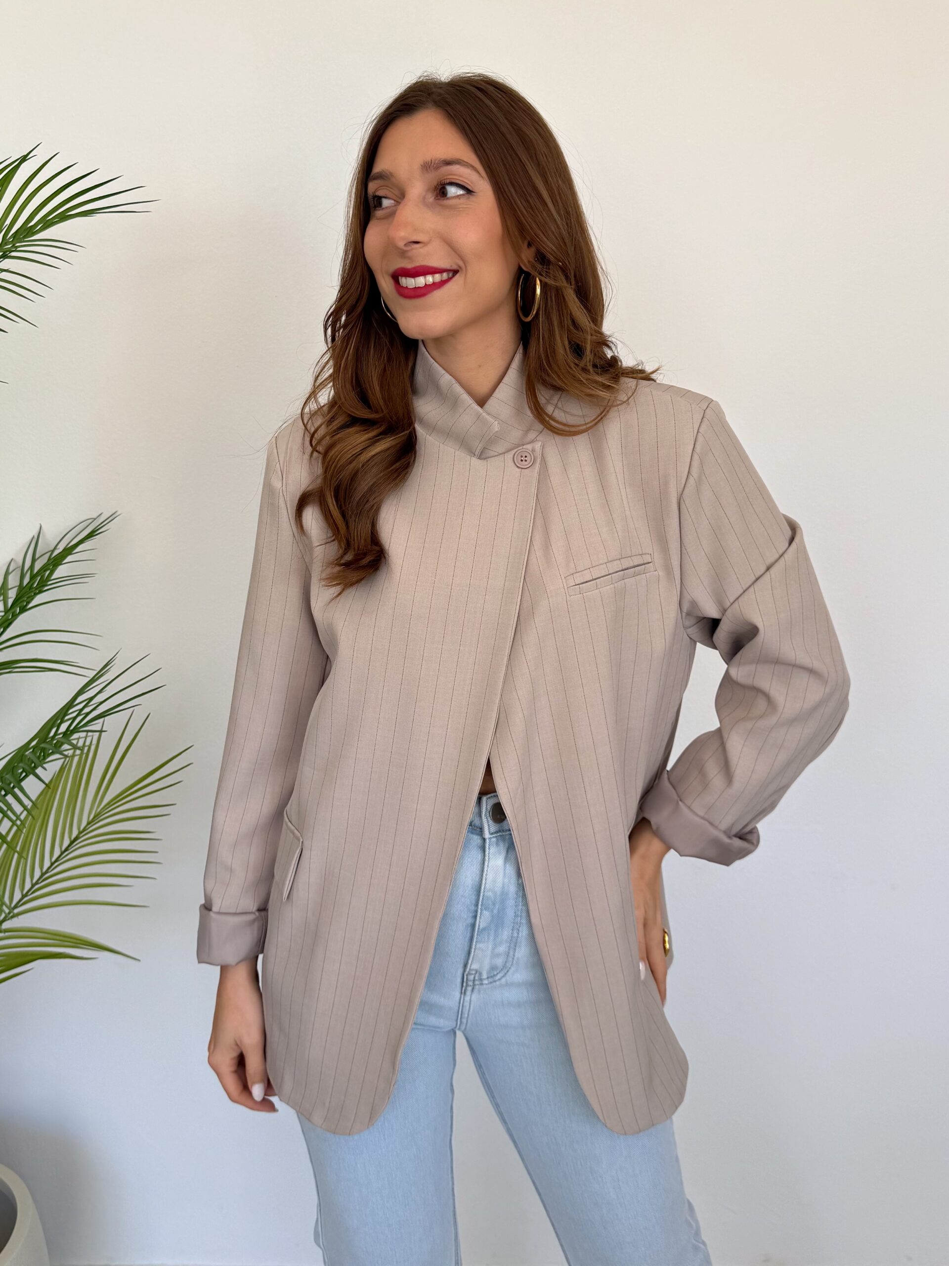 Blazer Cruzada Rayas Taupe