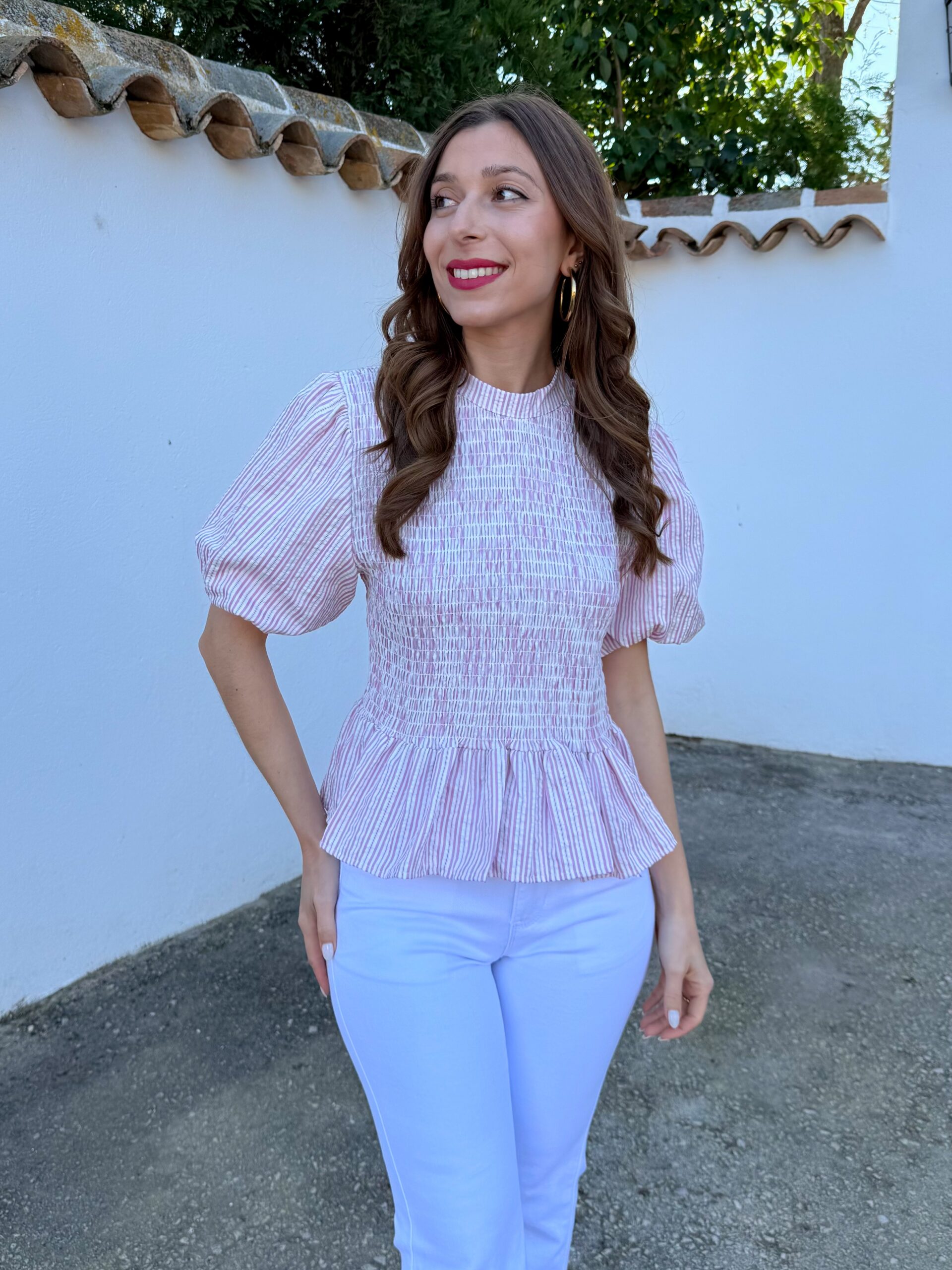 Blusa Farol Rayas Rosa Chicle