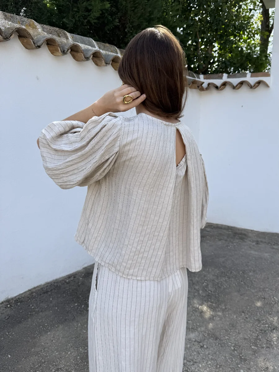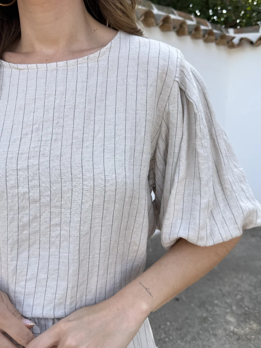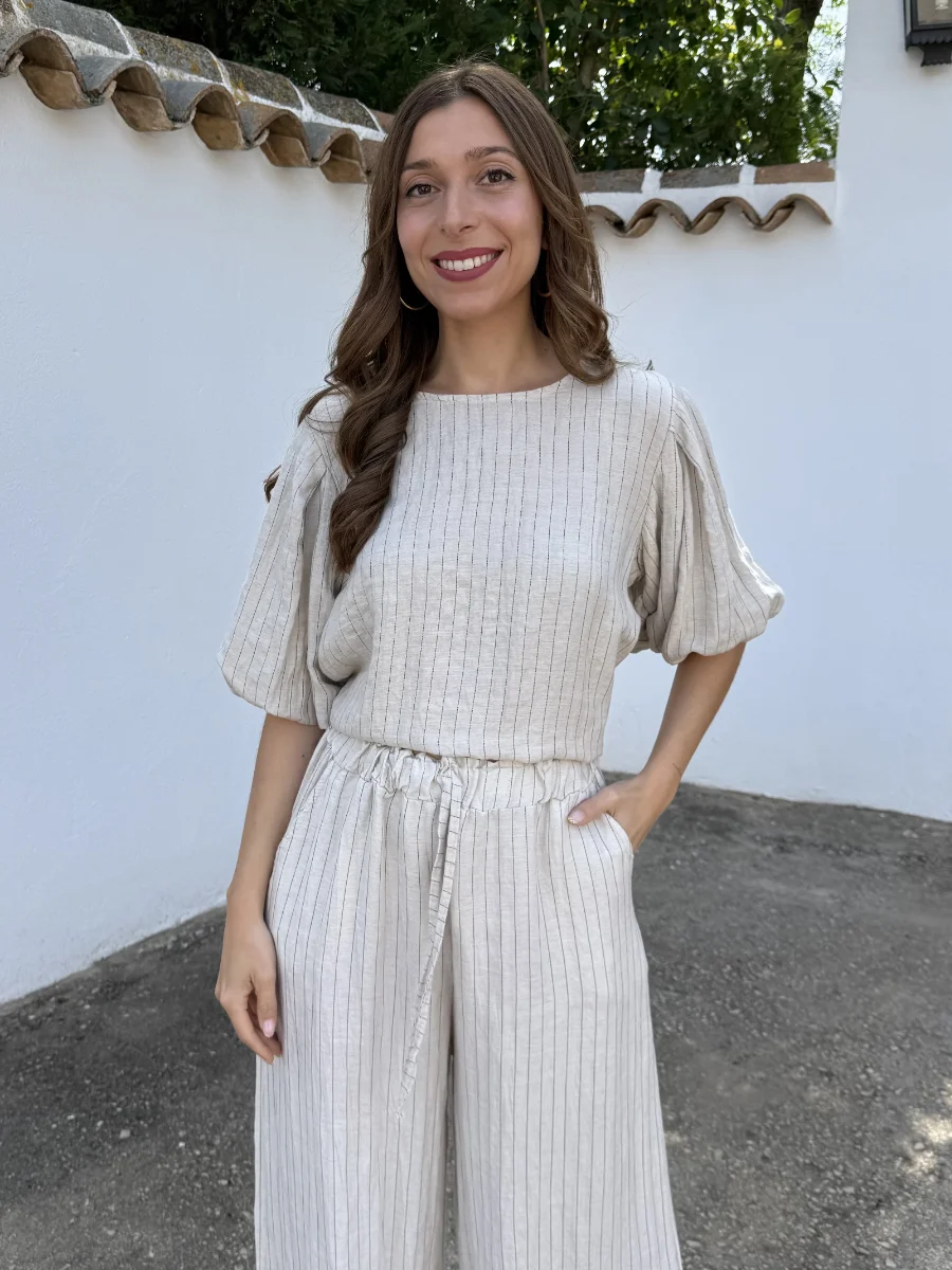 Blusa Lino Rayas Beige
