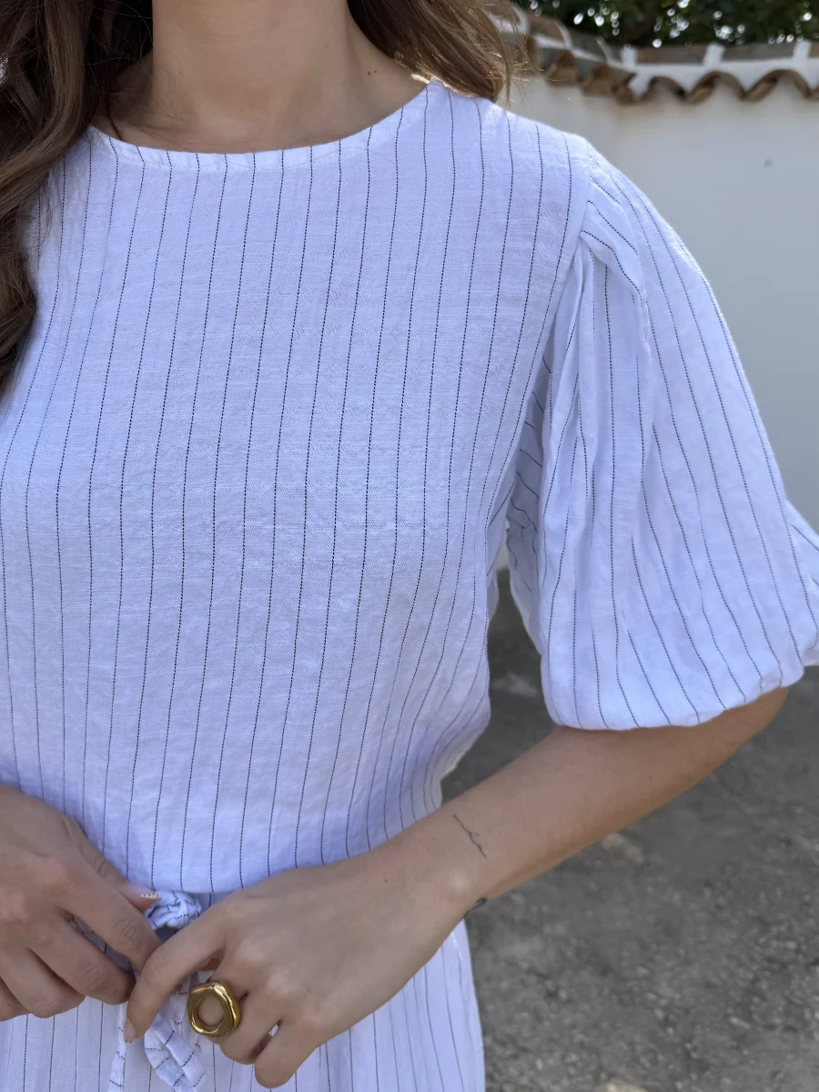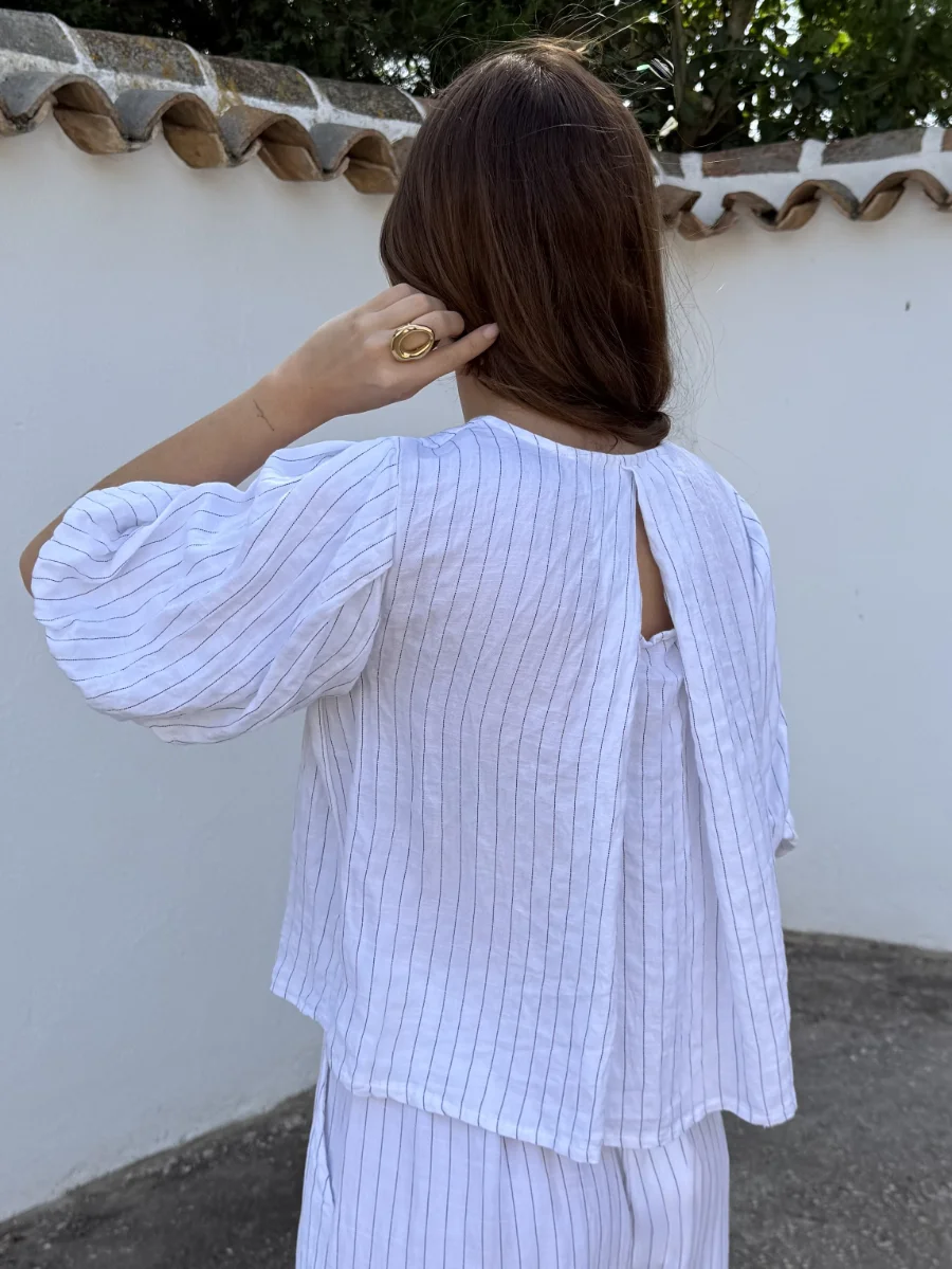Blusa Lino Rayas Blanco