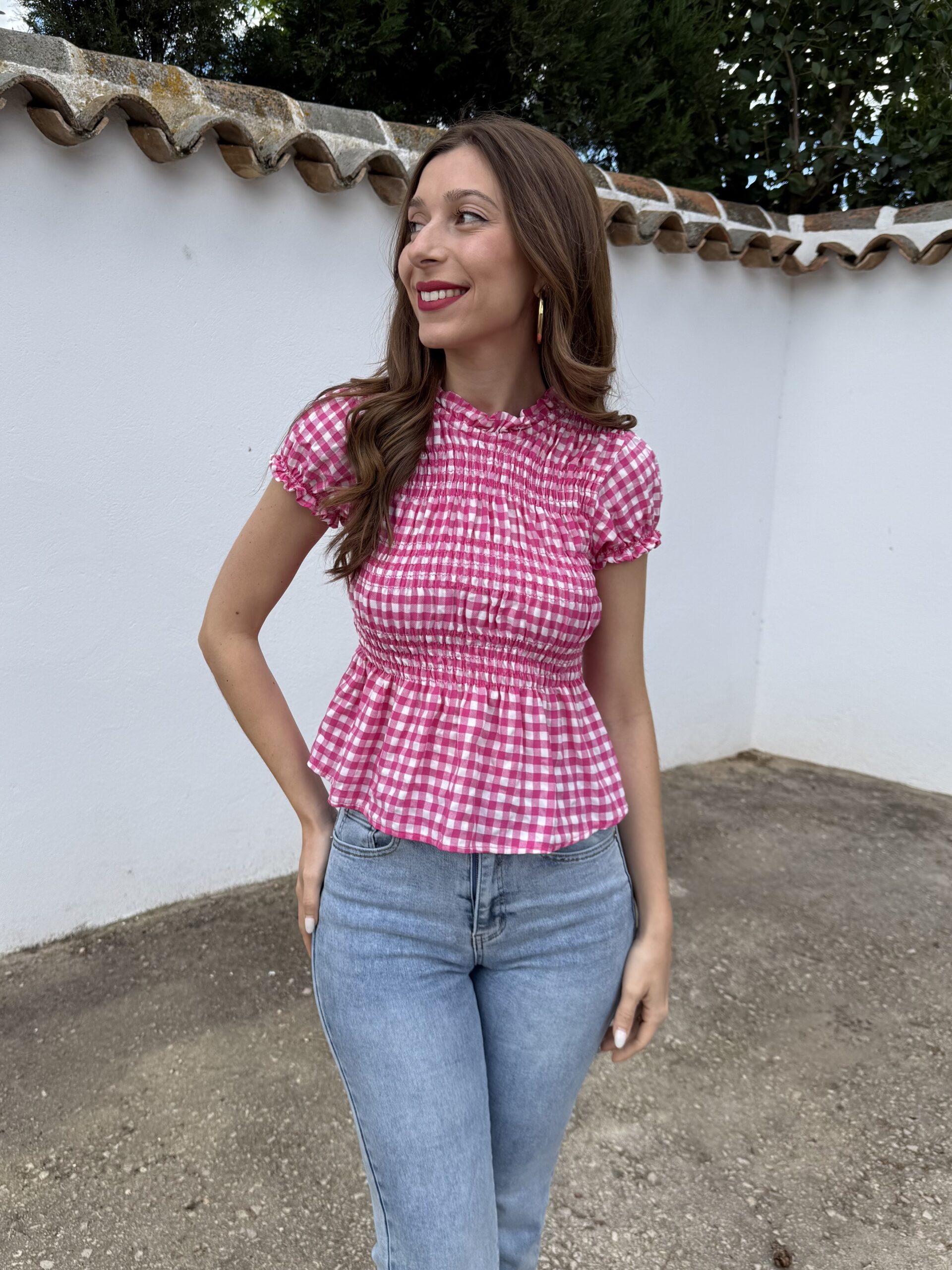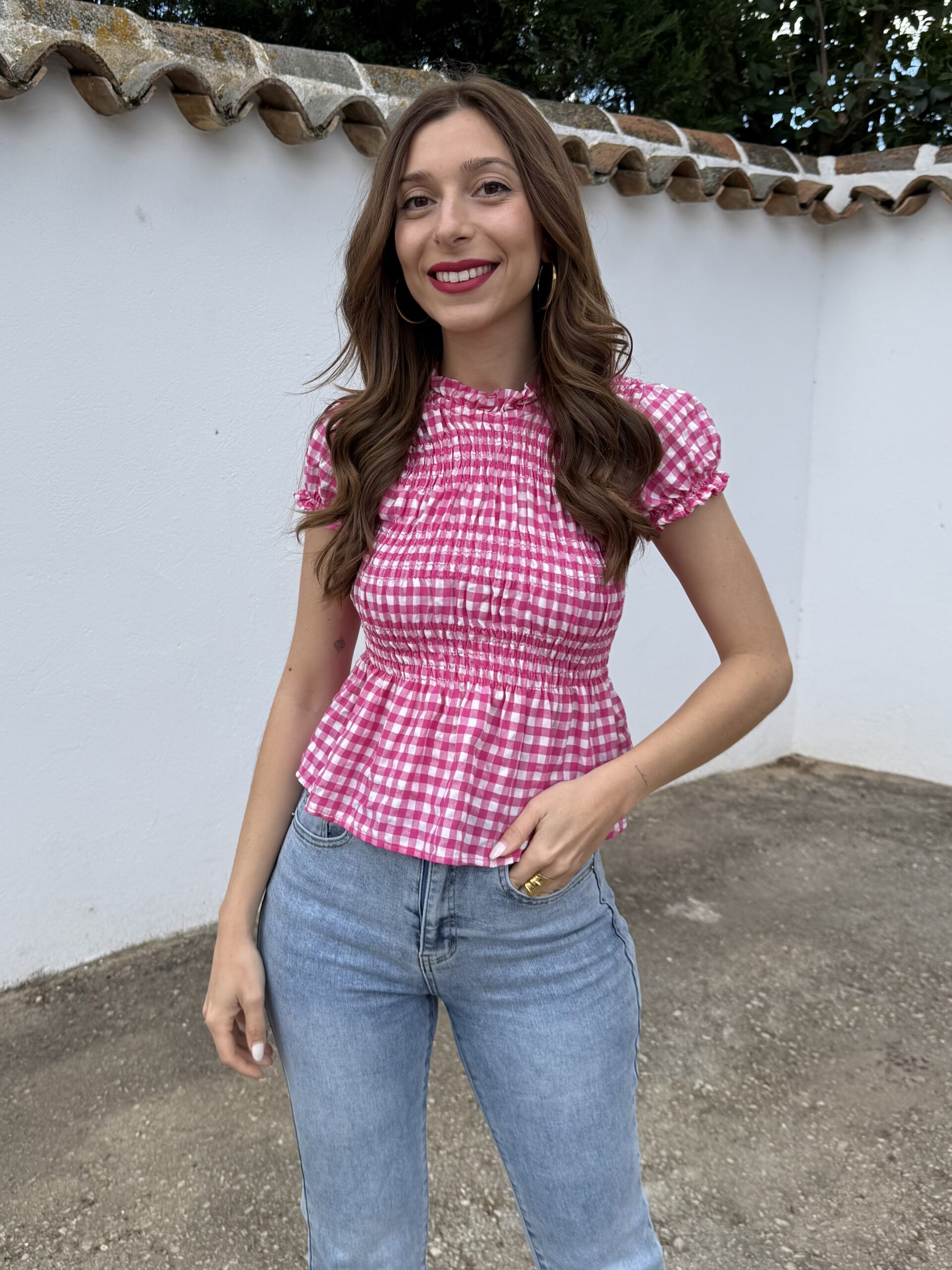 Blusa Panal Vichy Fucsia