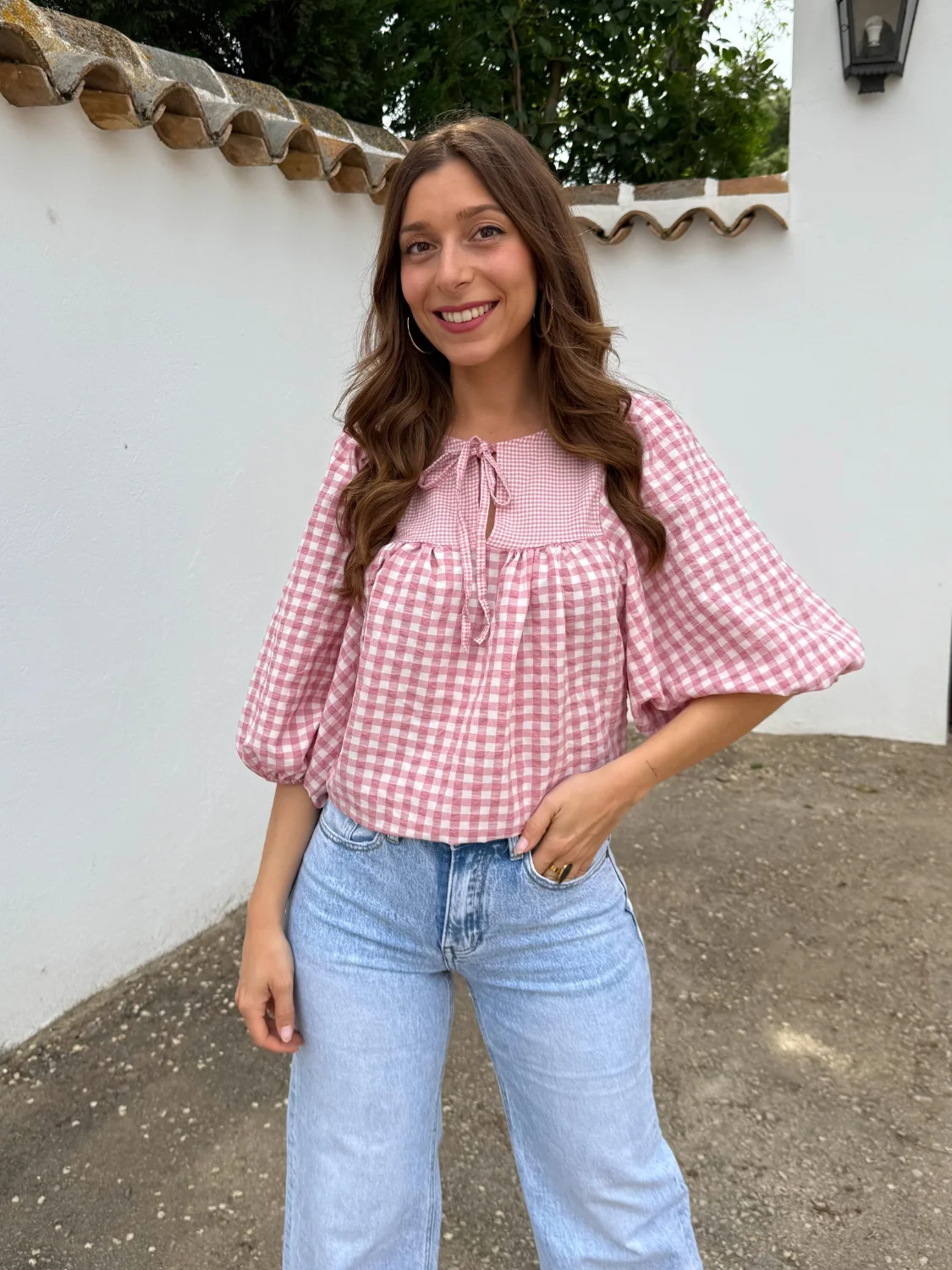 Blusa Vichy Sara Rosa