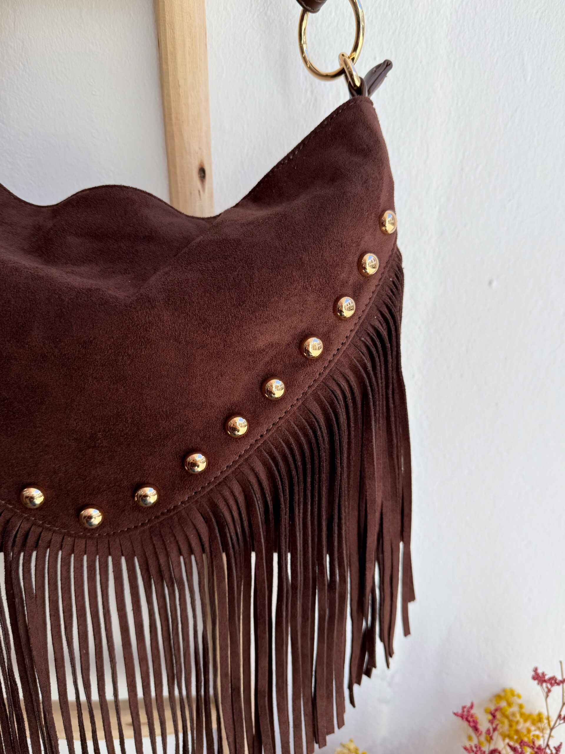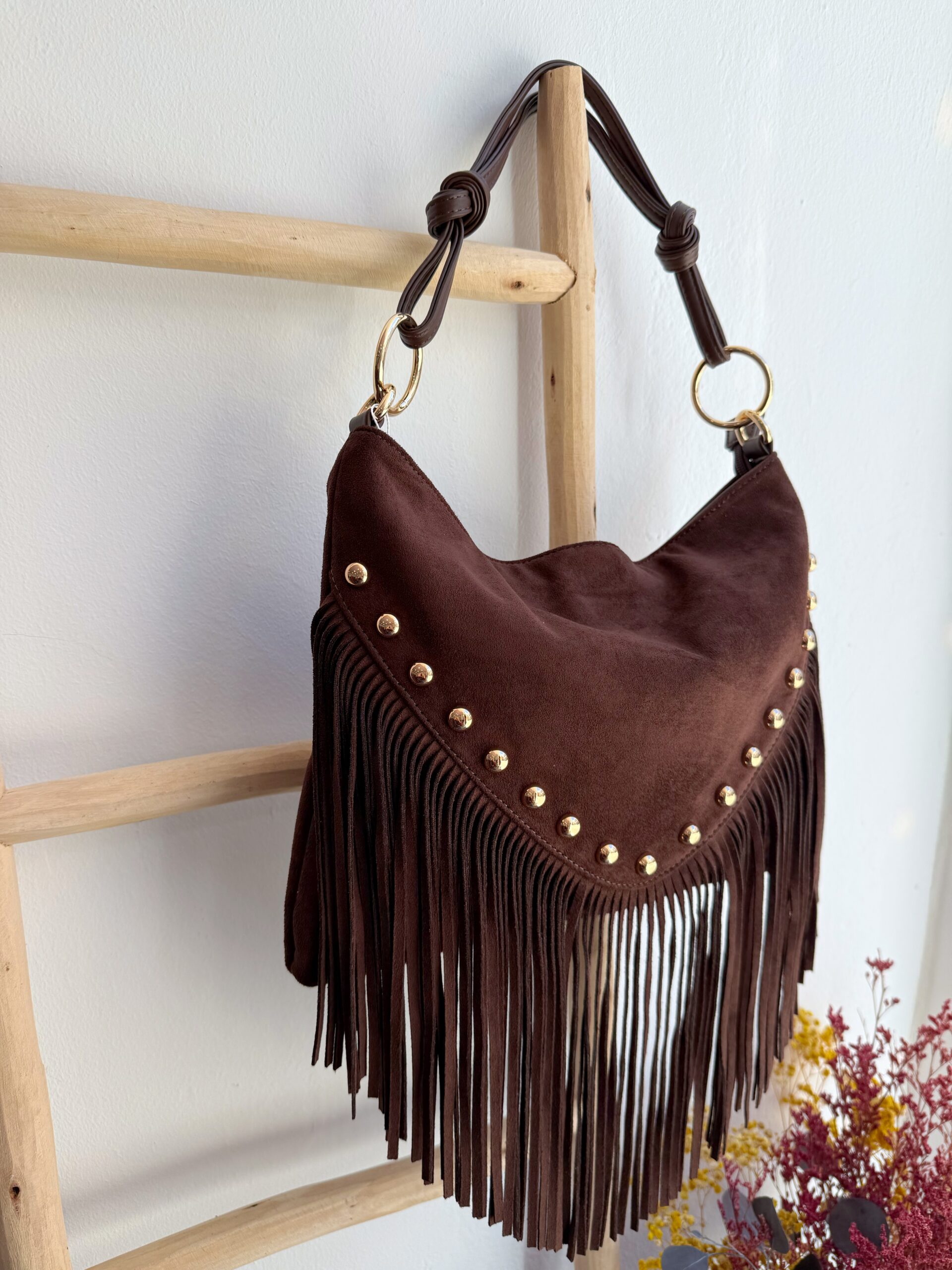 Bolso Serraje Flecos Chocolate