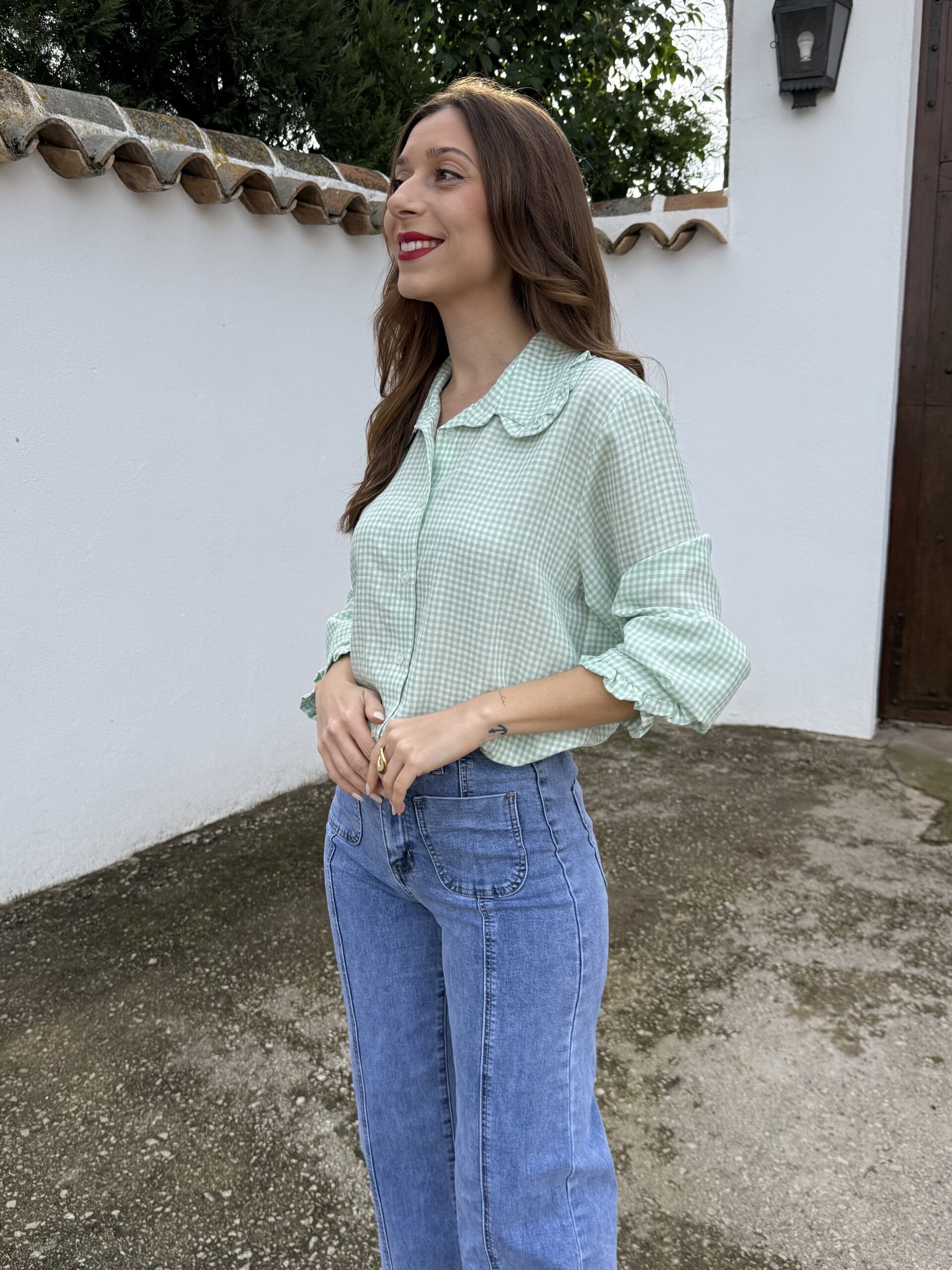 Camisa Babydoll Vichy Verde