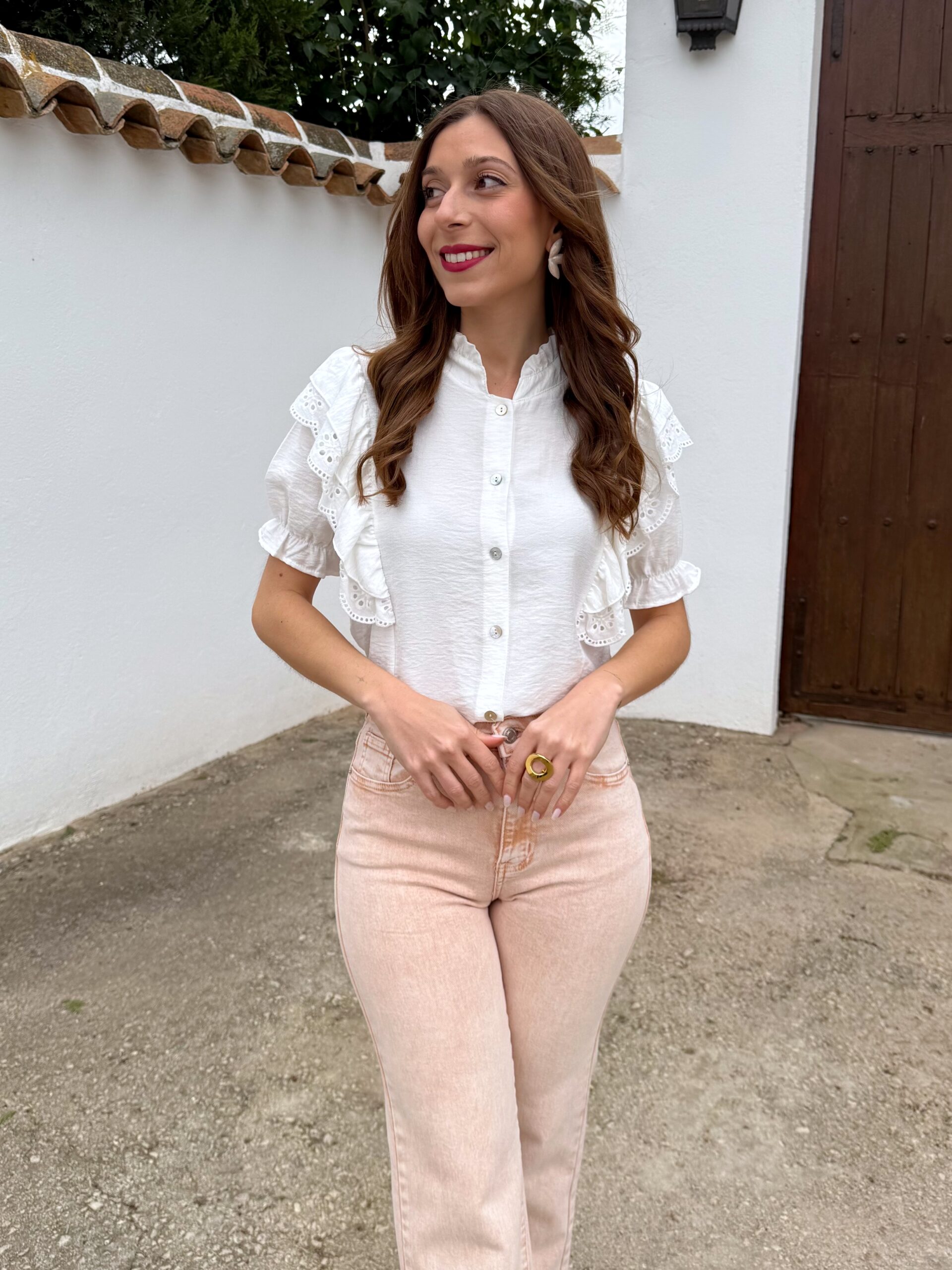 Camisa Volantes Manga Corta