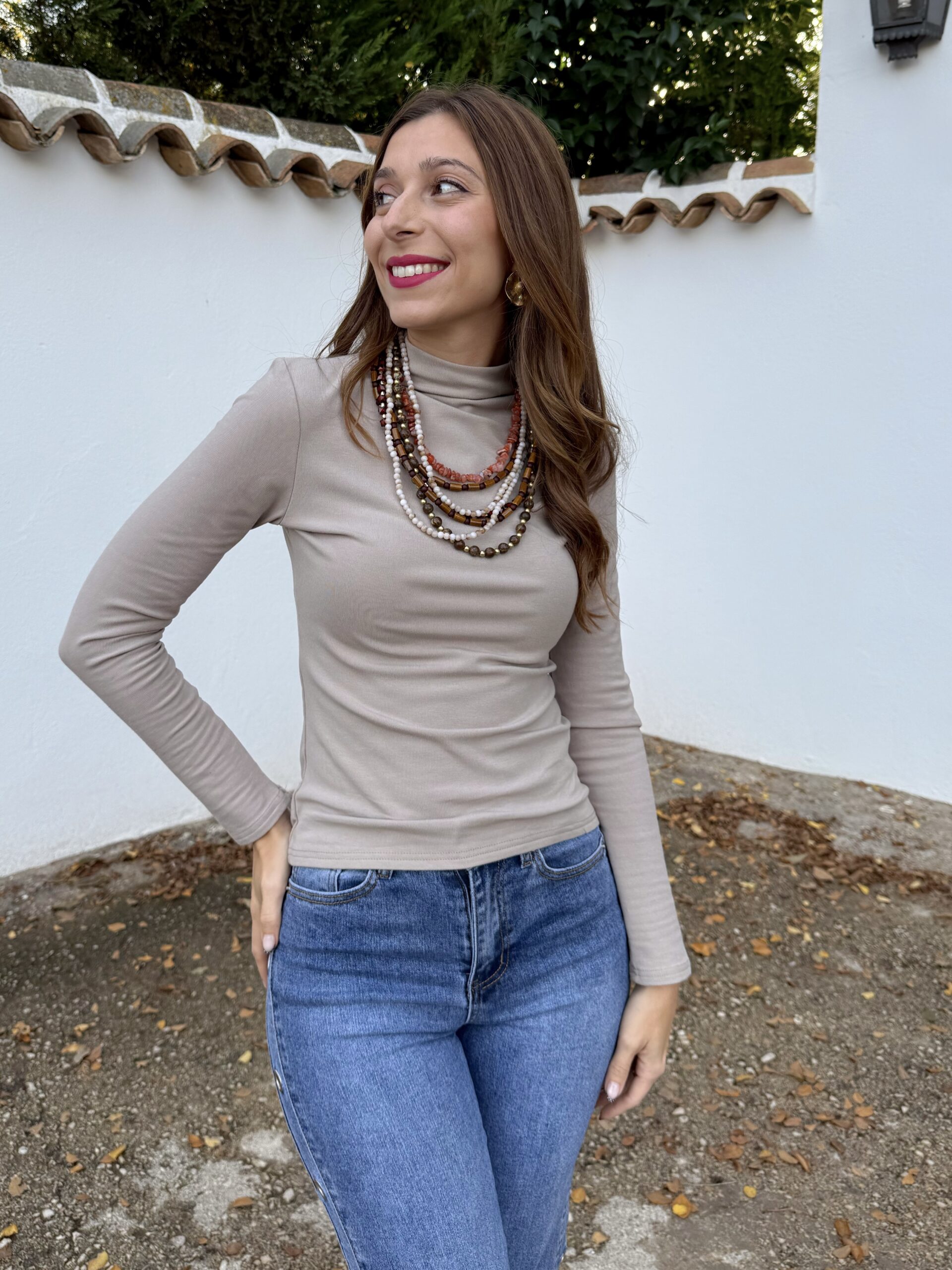 Fabricada en tejido suave y con su interior de pelito, su silueta limpia se adapta con comodidad a tu ritmo. El cuello redondo clásico aporta un toque de sobriedad mientras el color taupe sirve como lienzo ideal para combinar con piezas más atrevidas o mantener un look monocromático moderno.