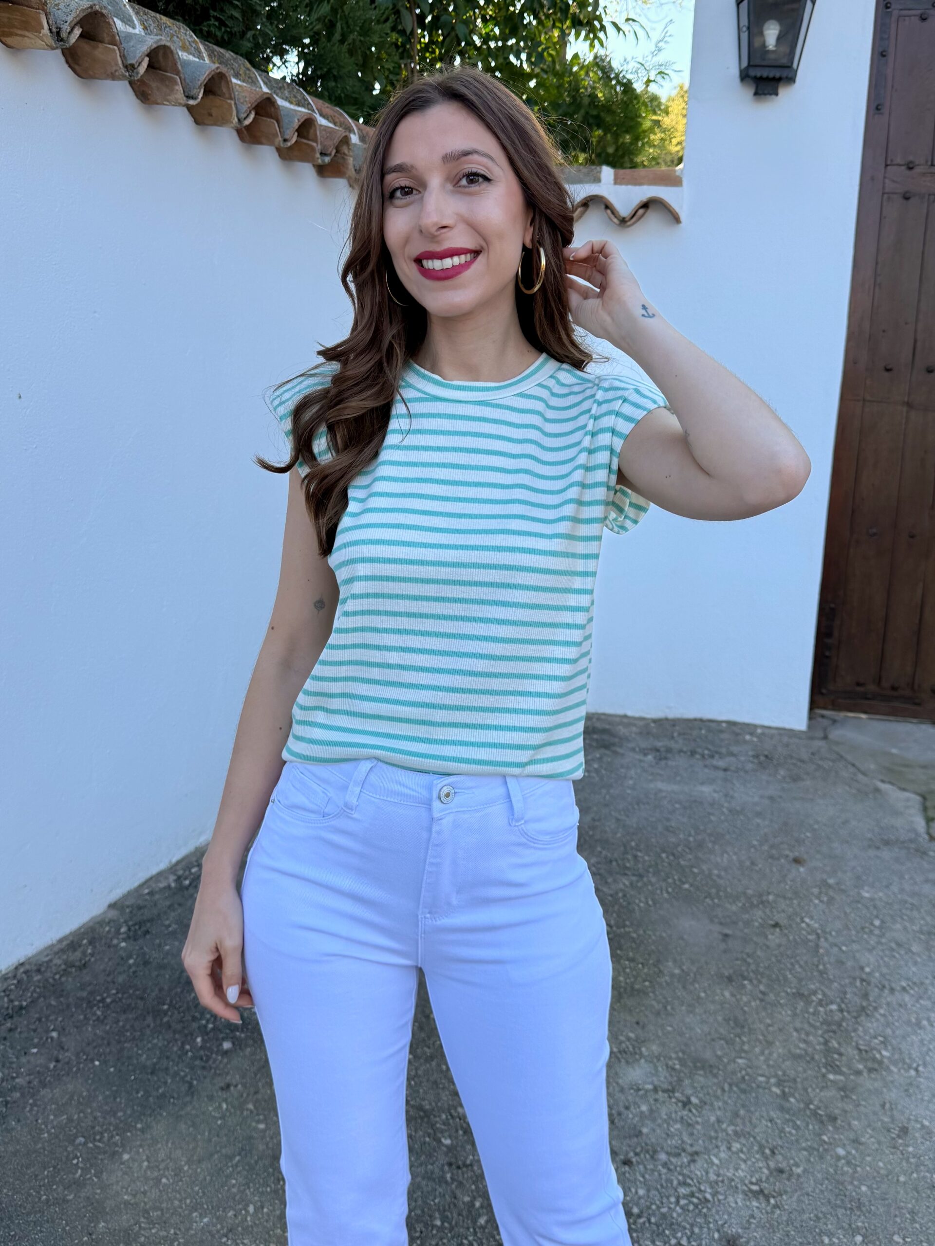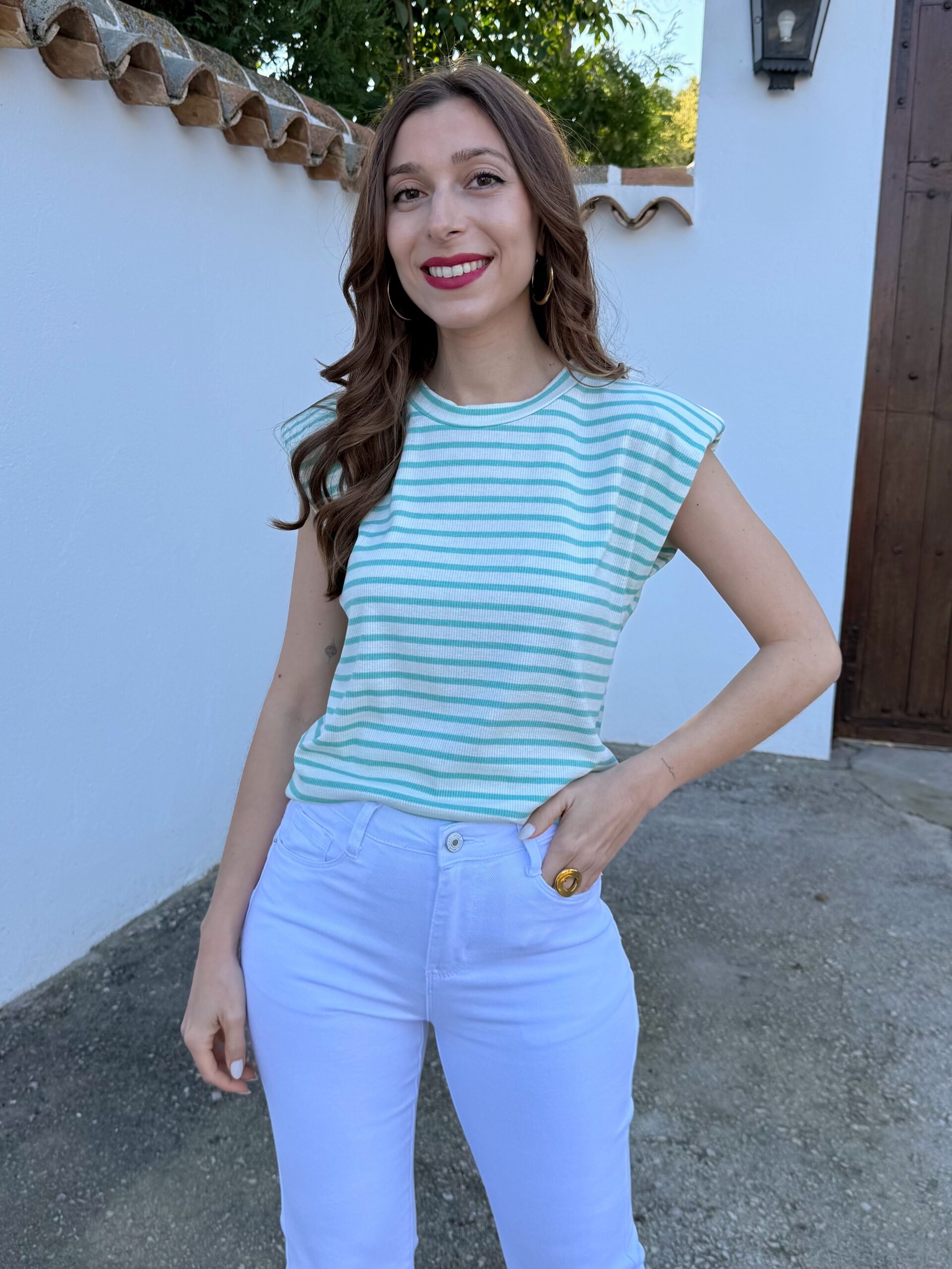 Camiseta Hombreras Rayas Turquesa