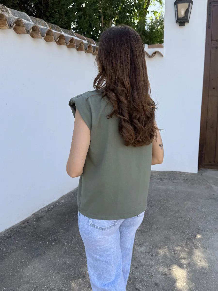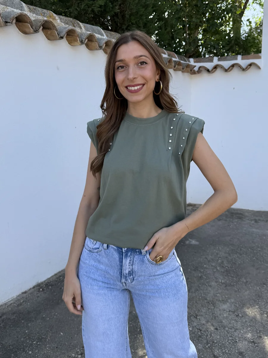Camiseta Hombreras Tachas Verde