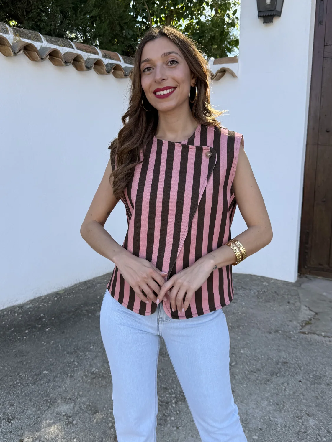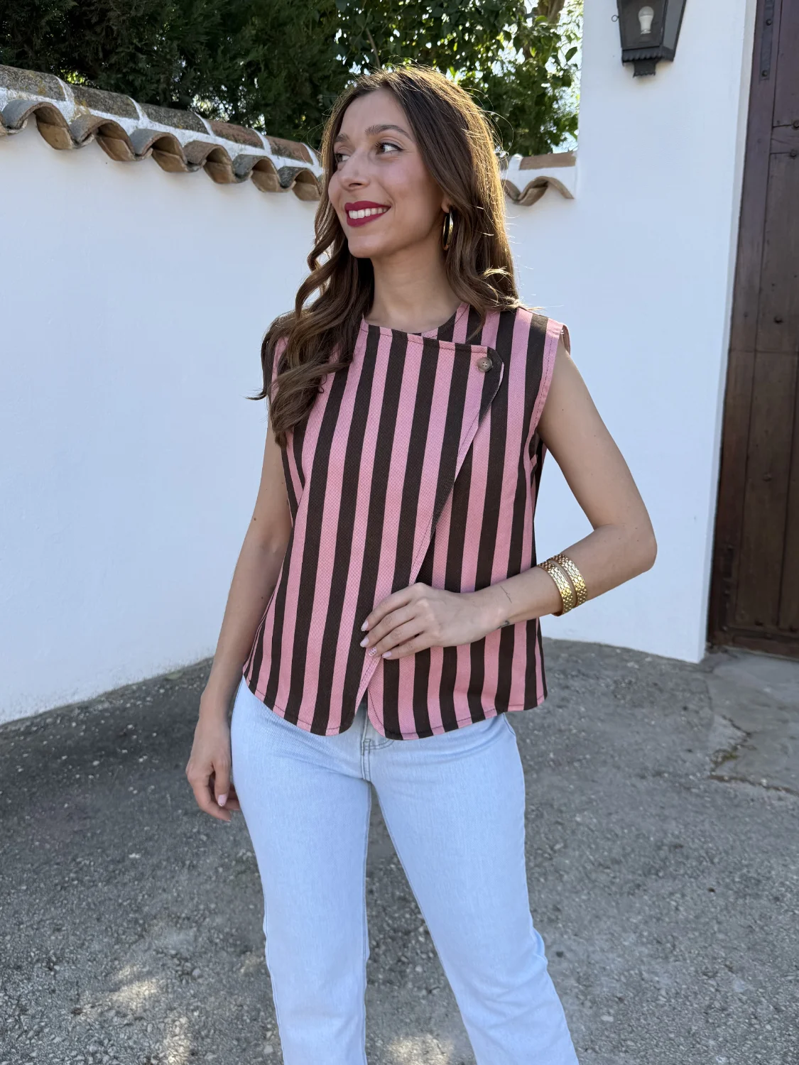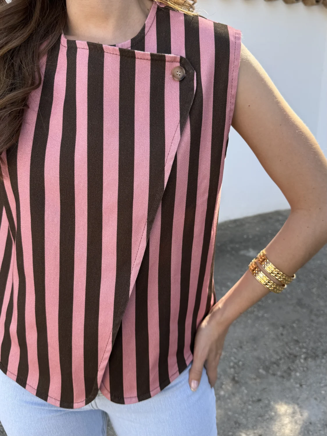 Chaleco Miley Rayas Rosa/Choco