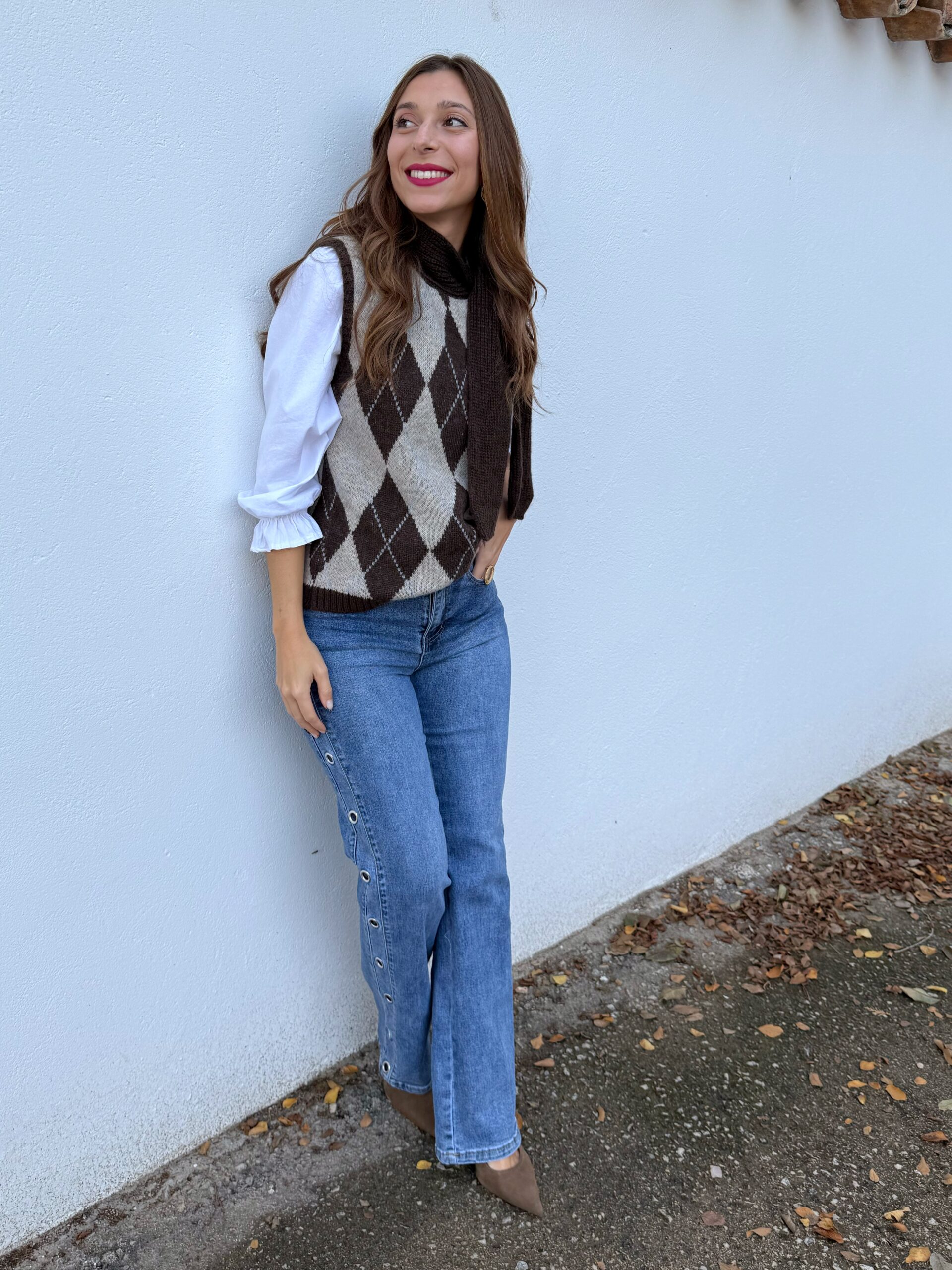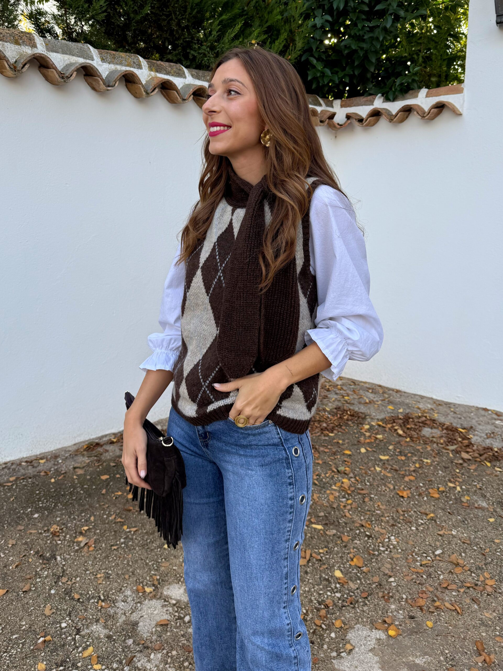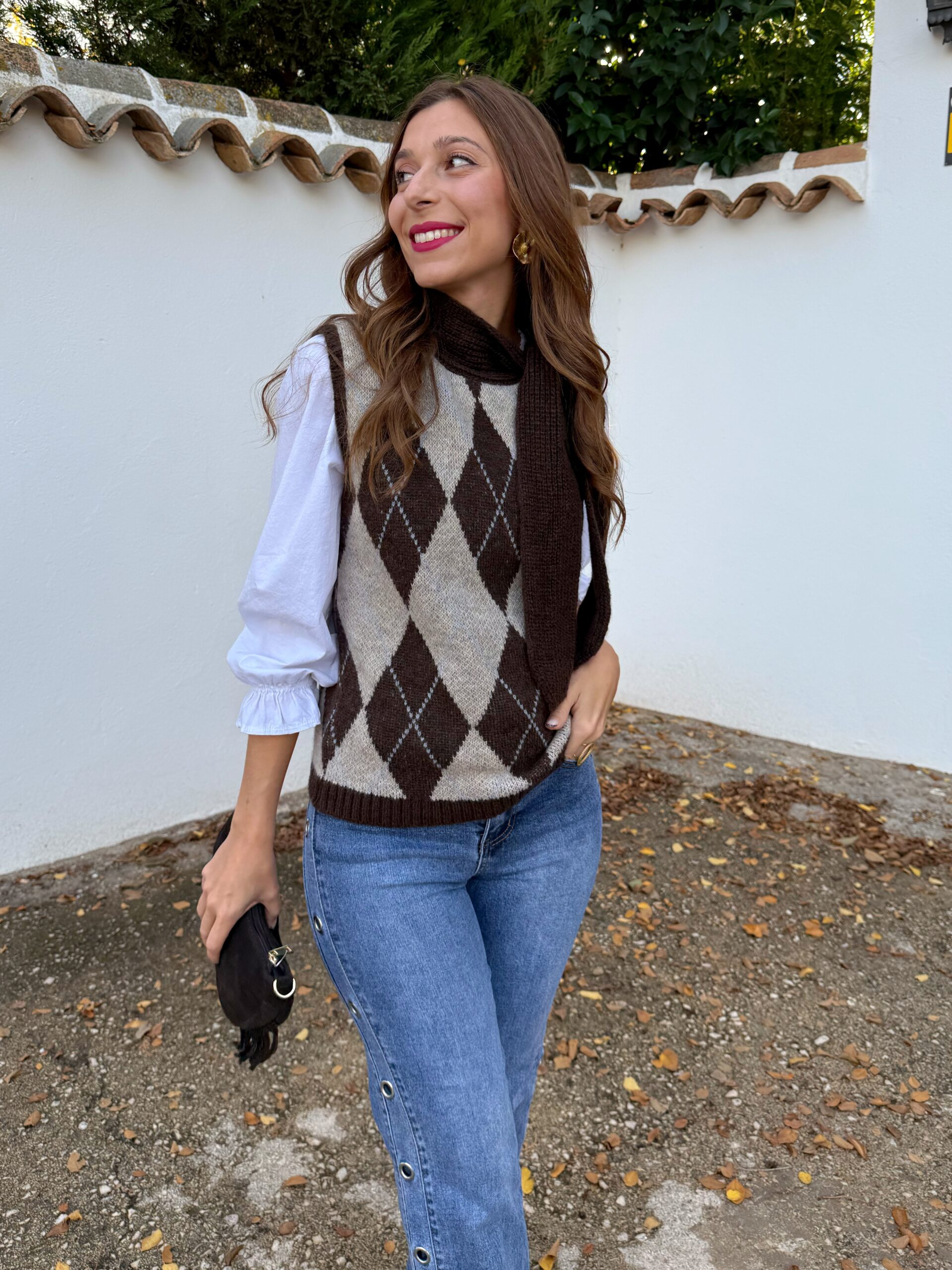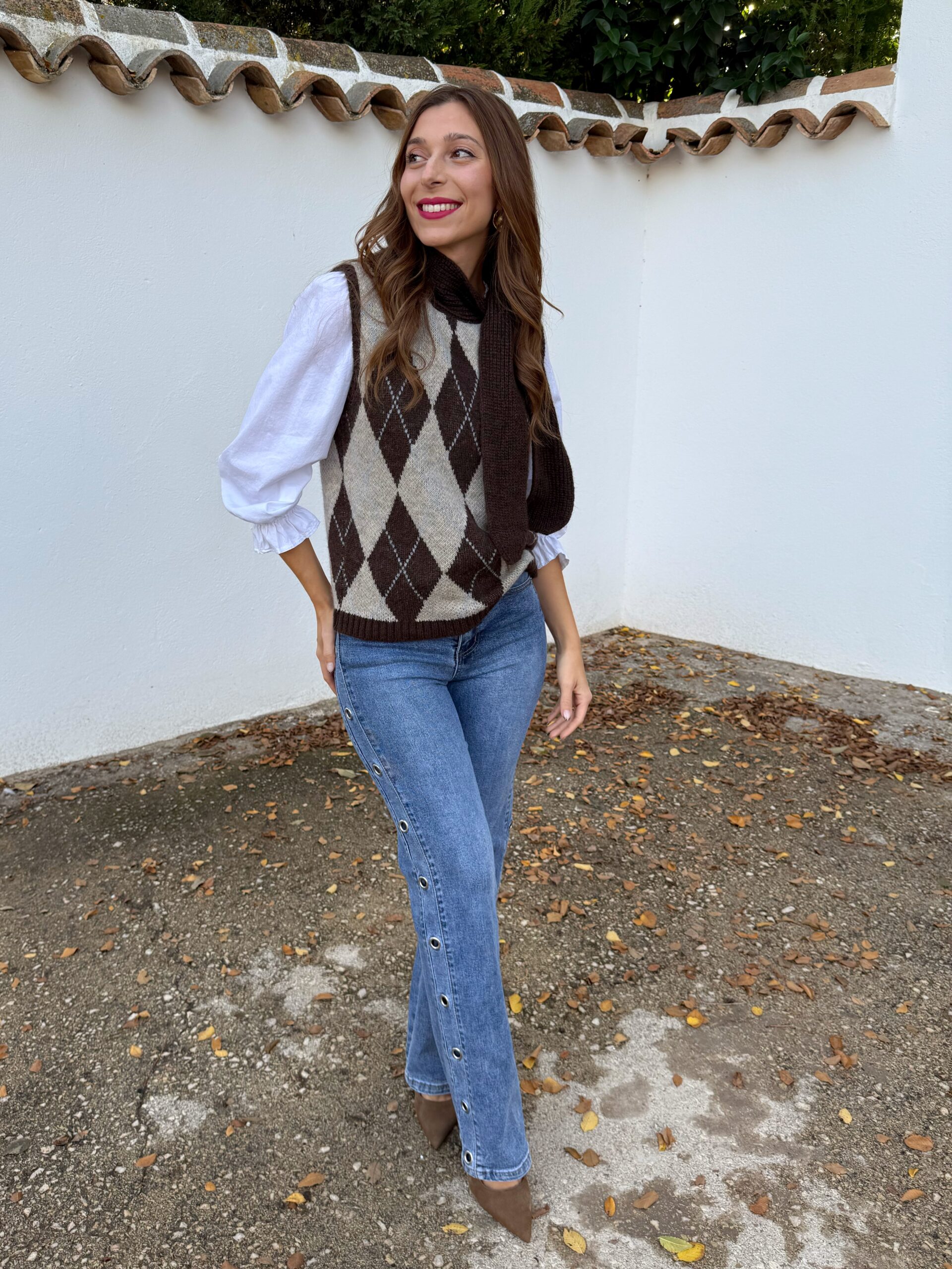 Este chaleco en color tendencia, marrón chocolate con patrón de rombos es esa prenda clave que transforma en segundos un look sencillo en algo con carácter. Su corte lo hace versátil y cómodo, perfecto para adaptarse a tu estilo sin complicaciones.