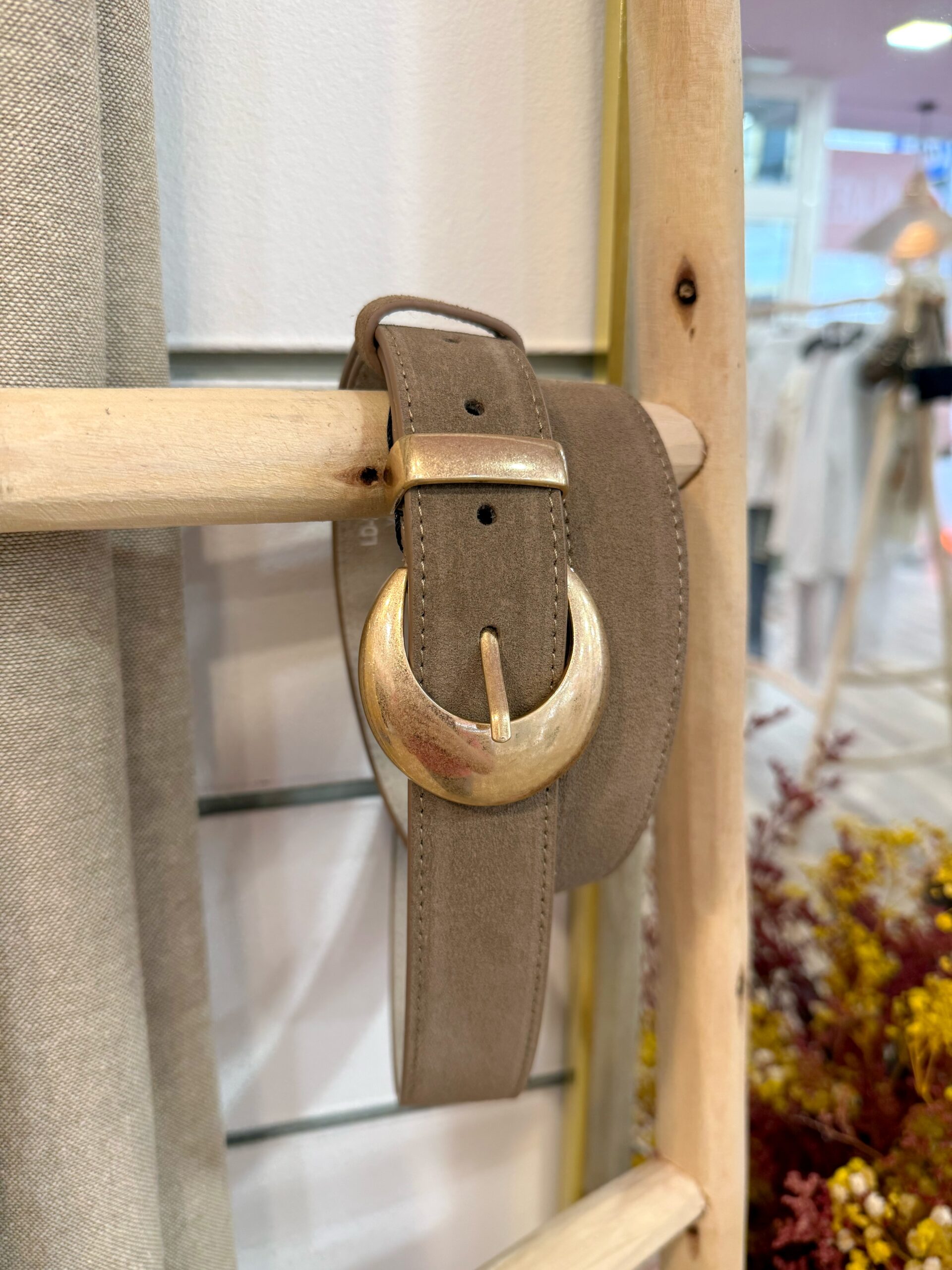 Su hebilla metálica en tono dorado añade un contraste elegante y atemporal, convirtiéndolo en el complemento ideal tanto para outfits formales como para combinaciones más casuales. Versátil, refinado y fácil de combinar, es una pieza imprescindible en cualquier armario.