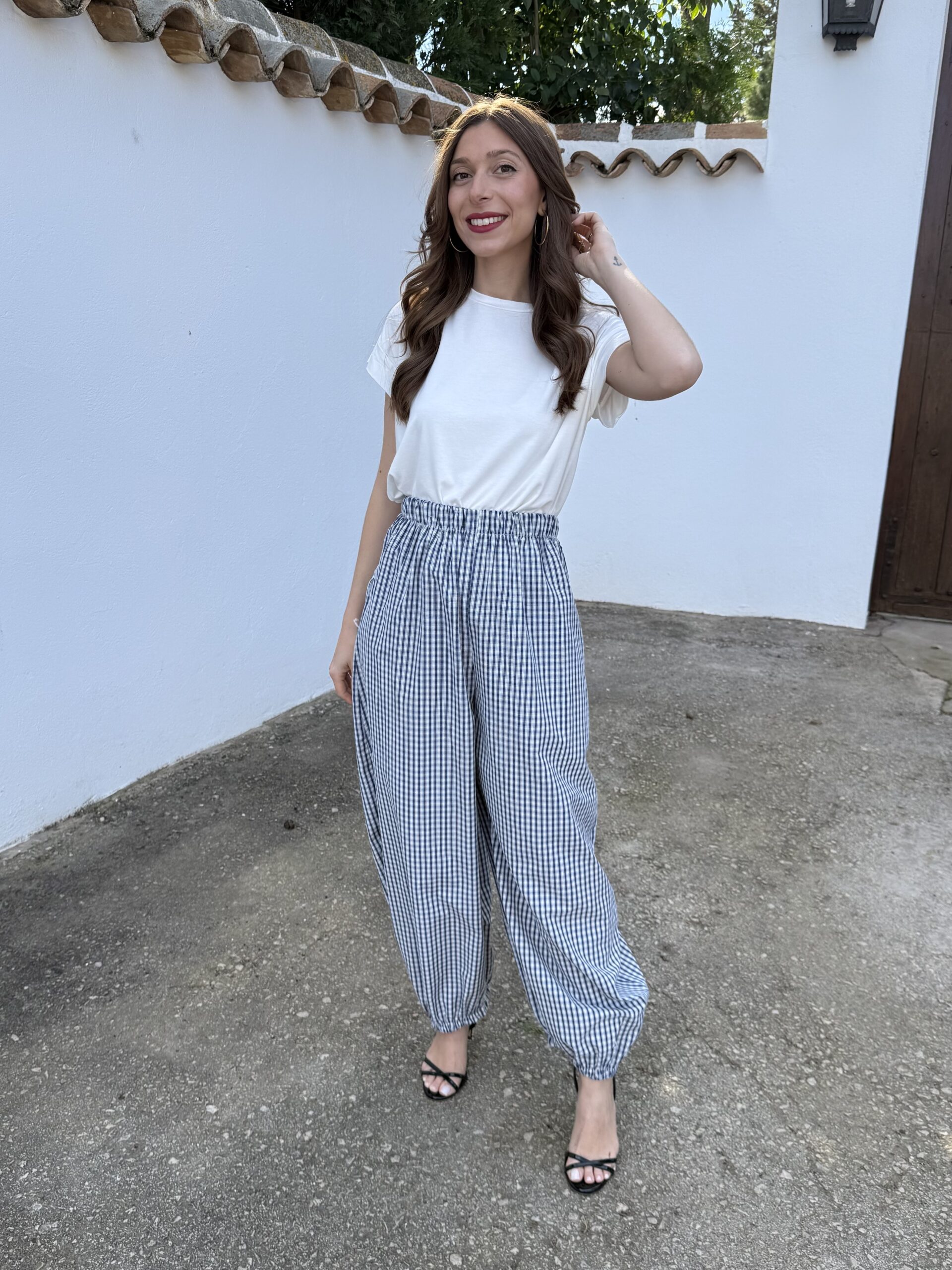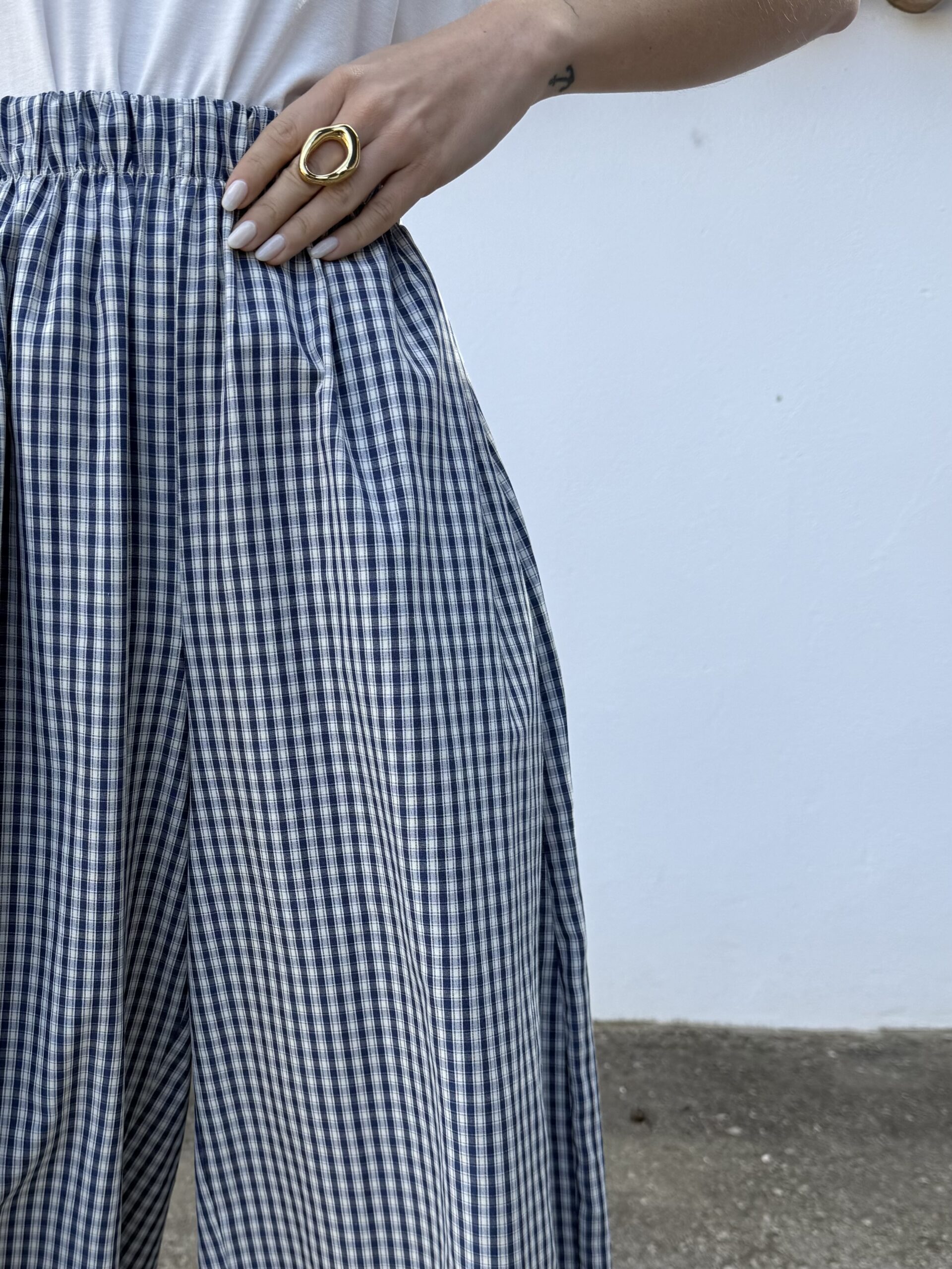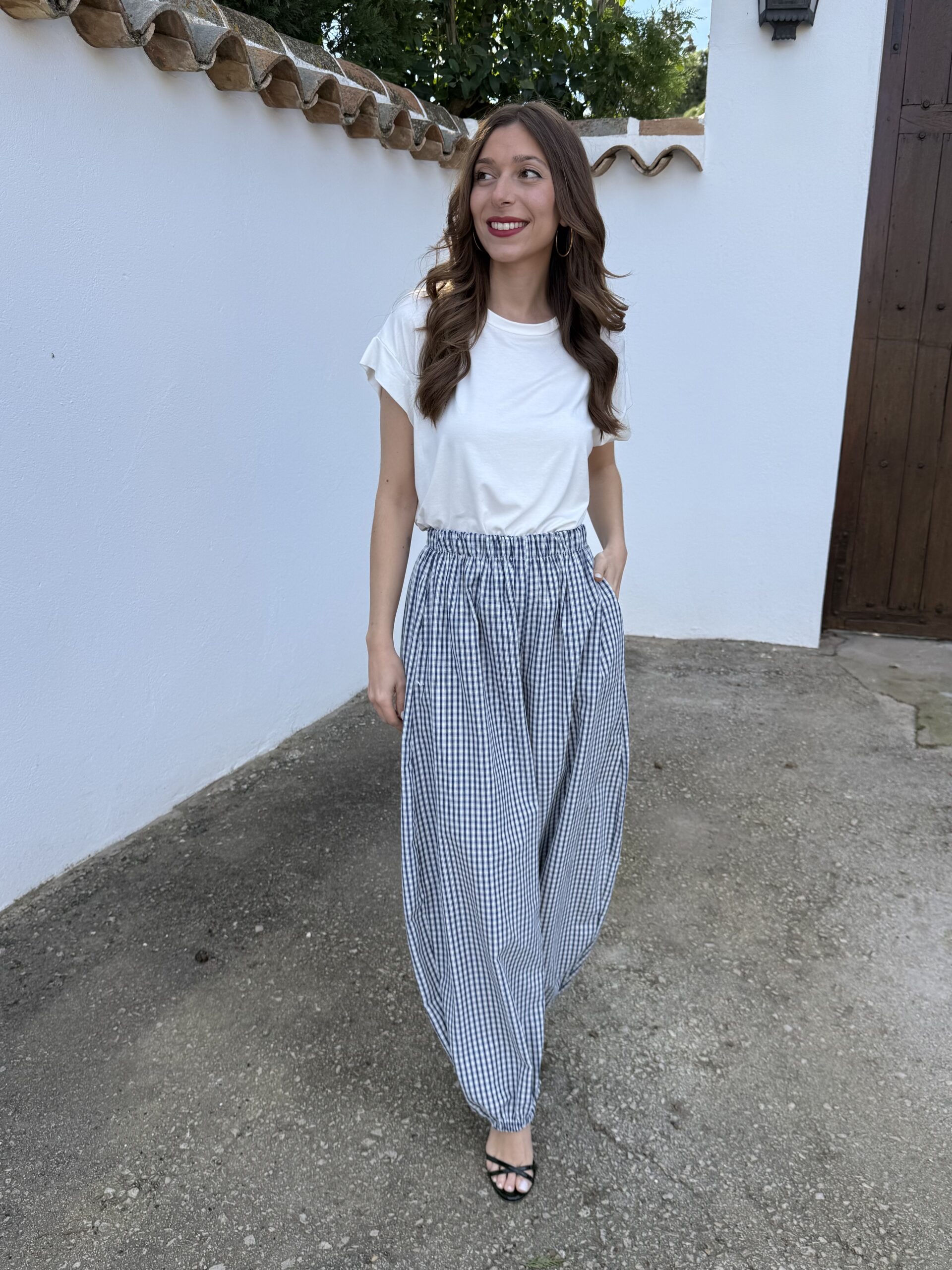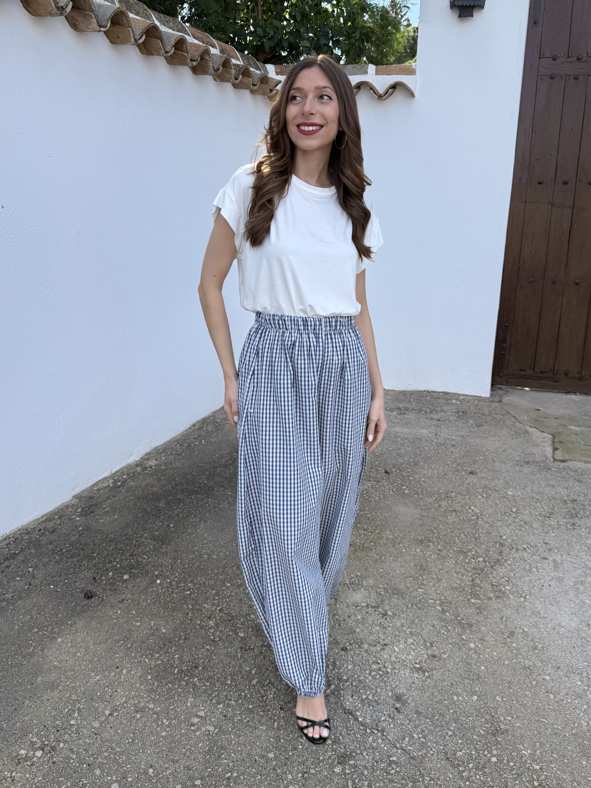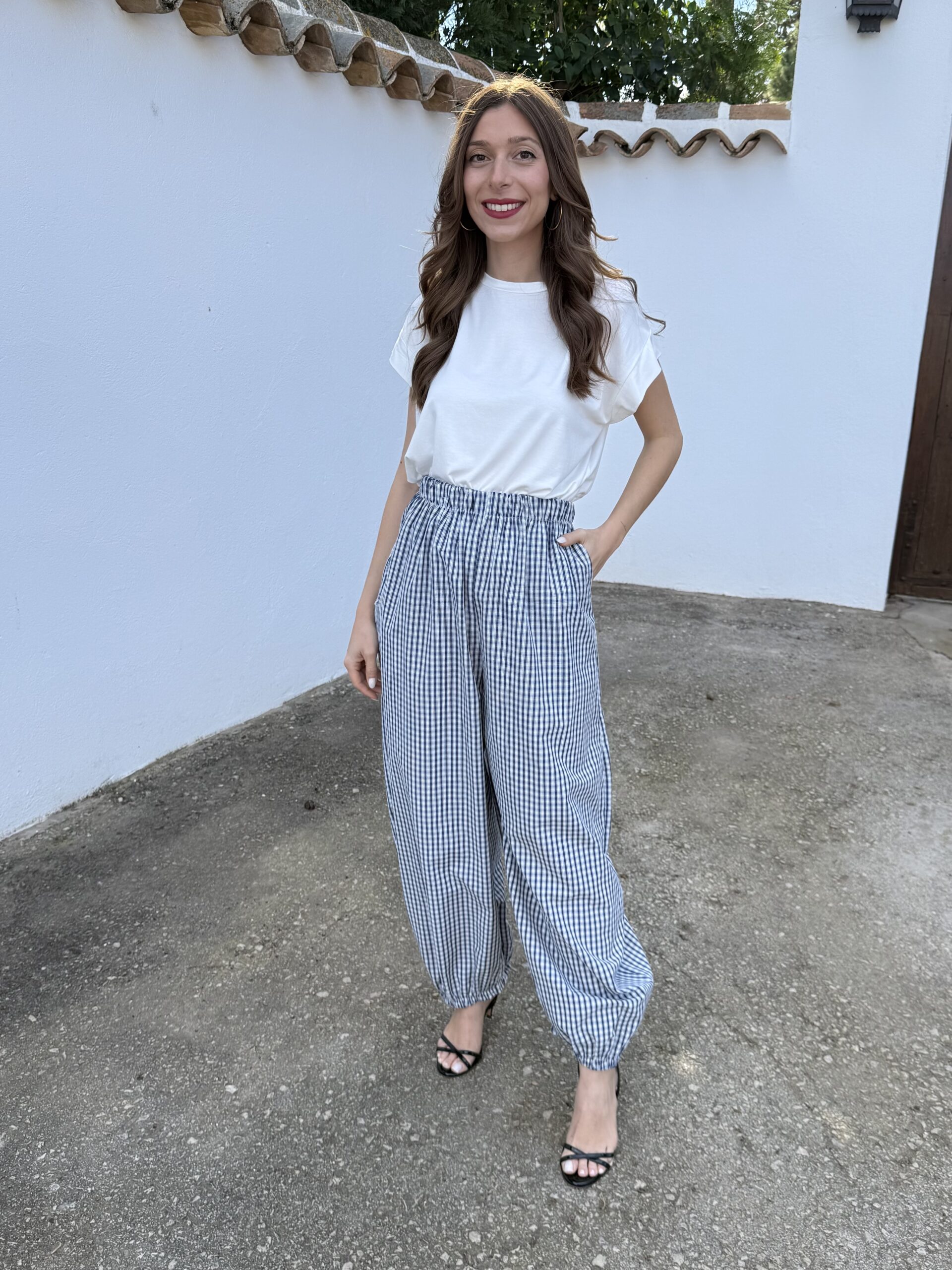 Pantalón Bombacho Vichy Azul Marino